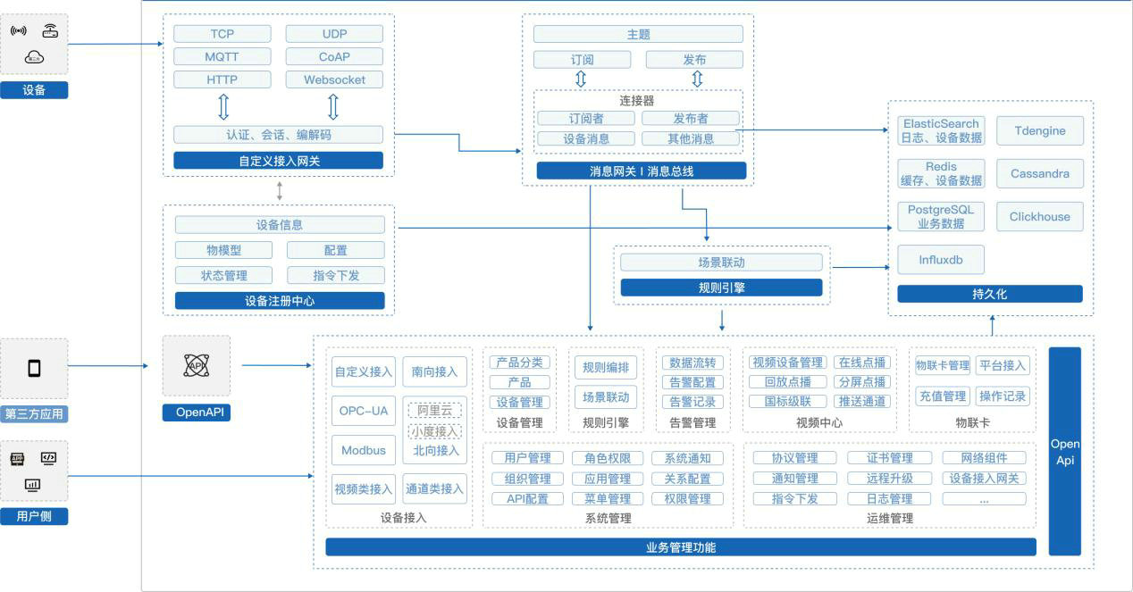 核心特點:支持多中設備協議;多租戶配置;支持公眾號,短信和語音報警通知