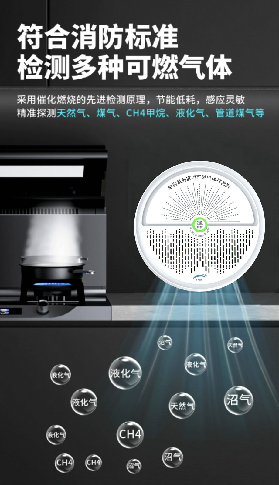 ☆  選用行業(yè)領(lǐng)先高性能低功耗傳感器,兼顧性能與功耗。最大可同時(shí)支持2種檢測(cè)類別,杜絕家庭氣體安全隱患盲區(qū);